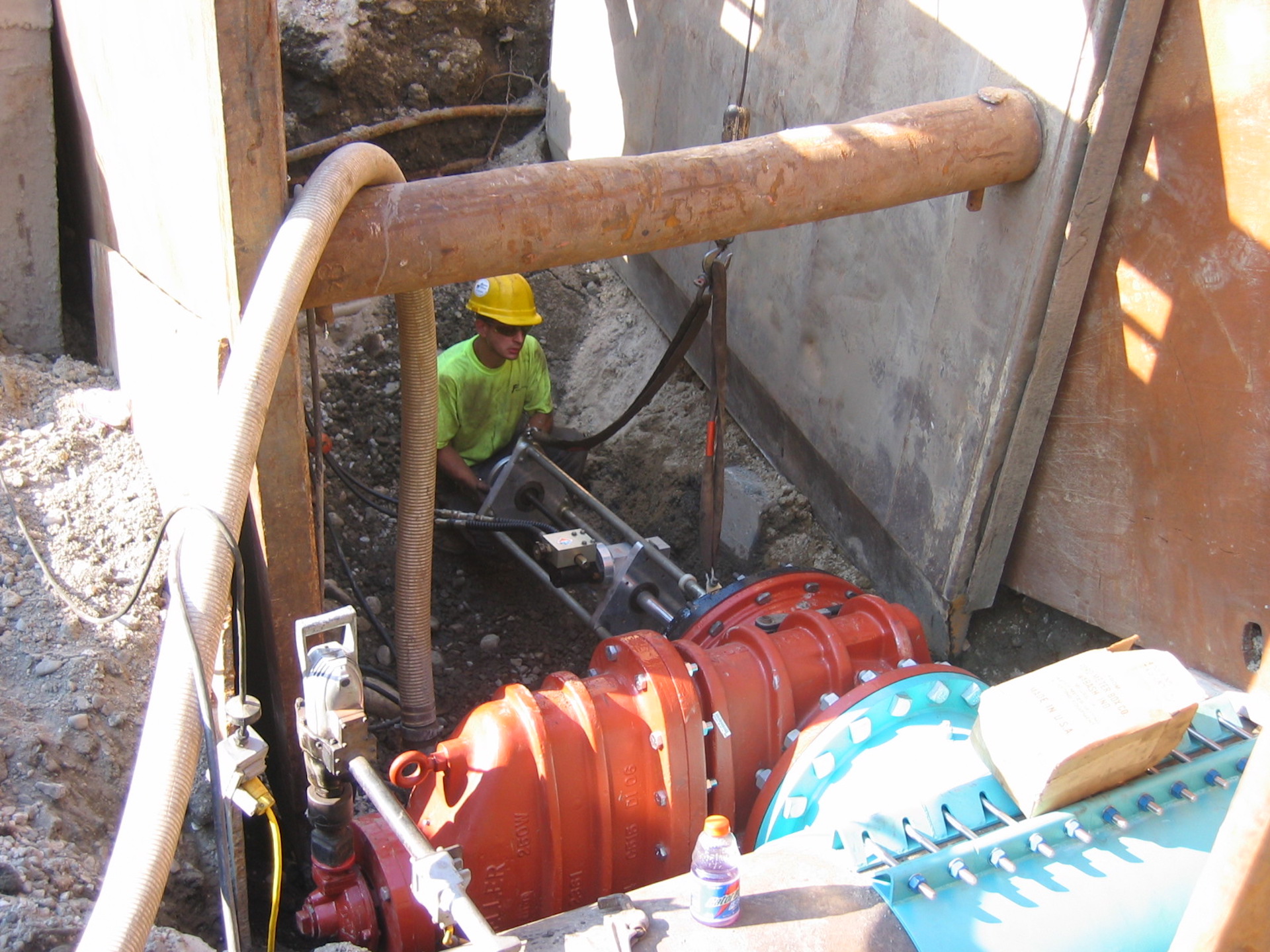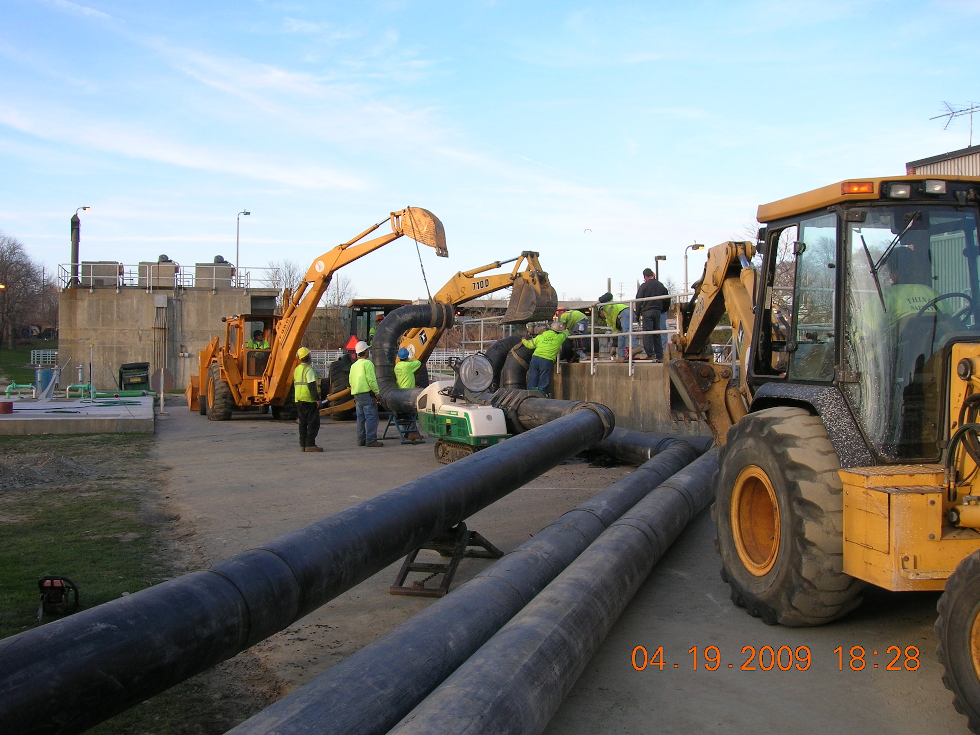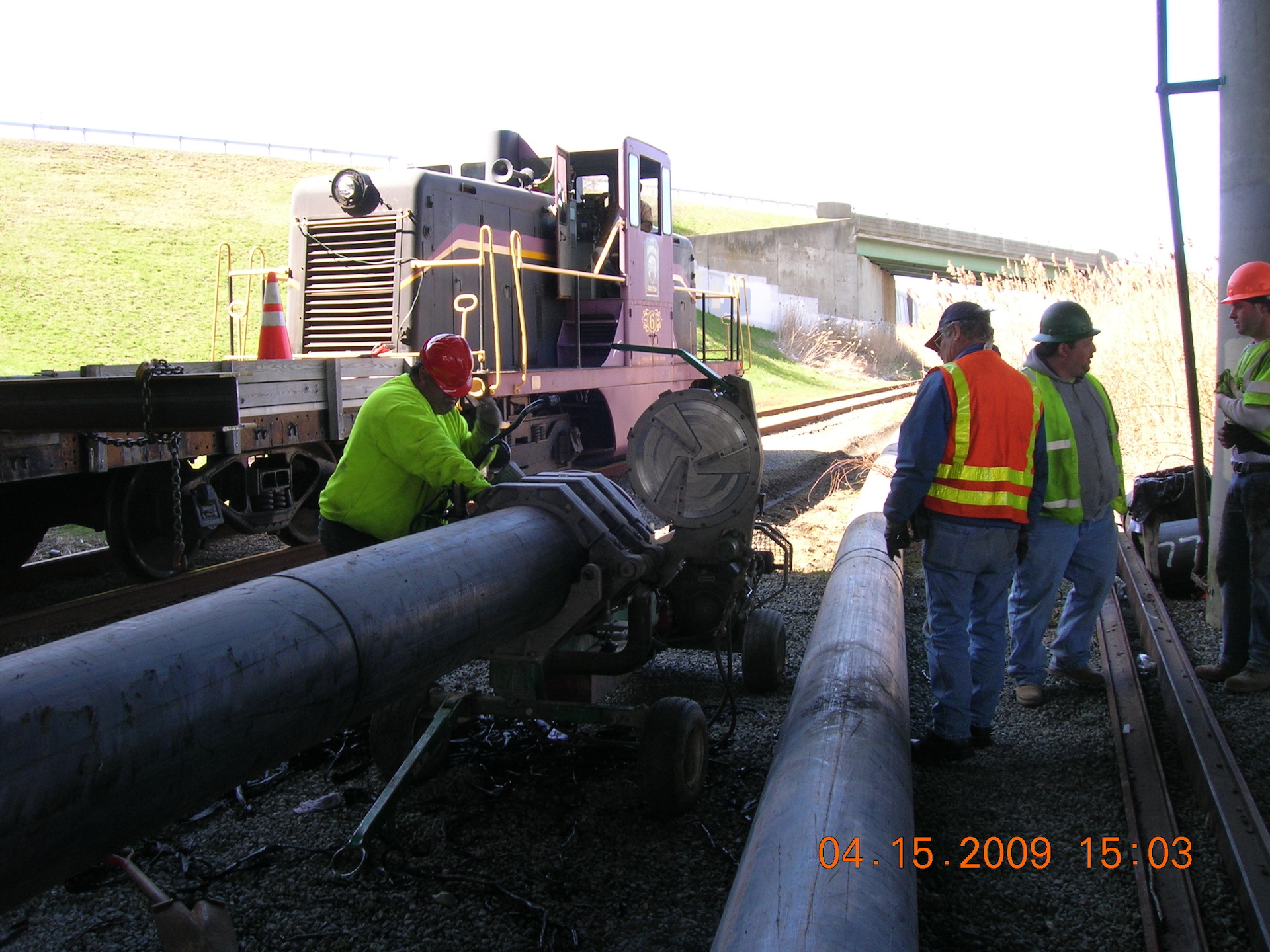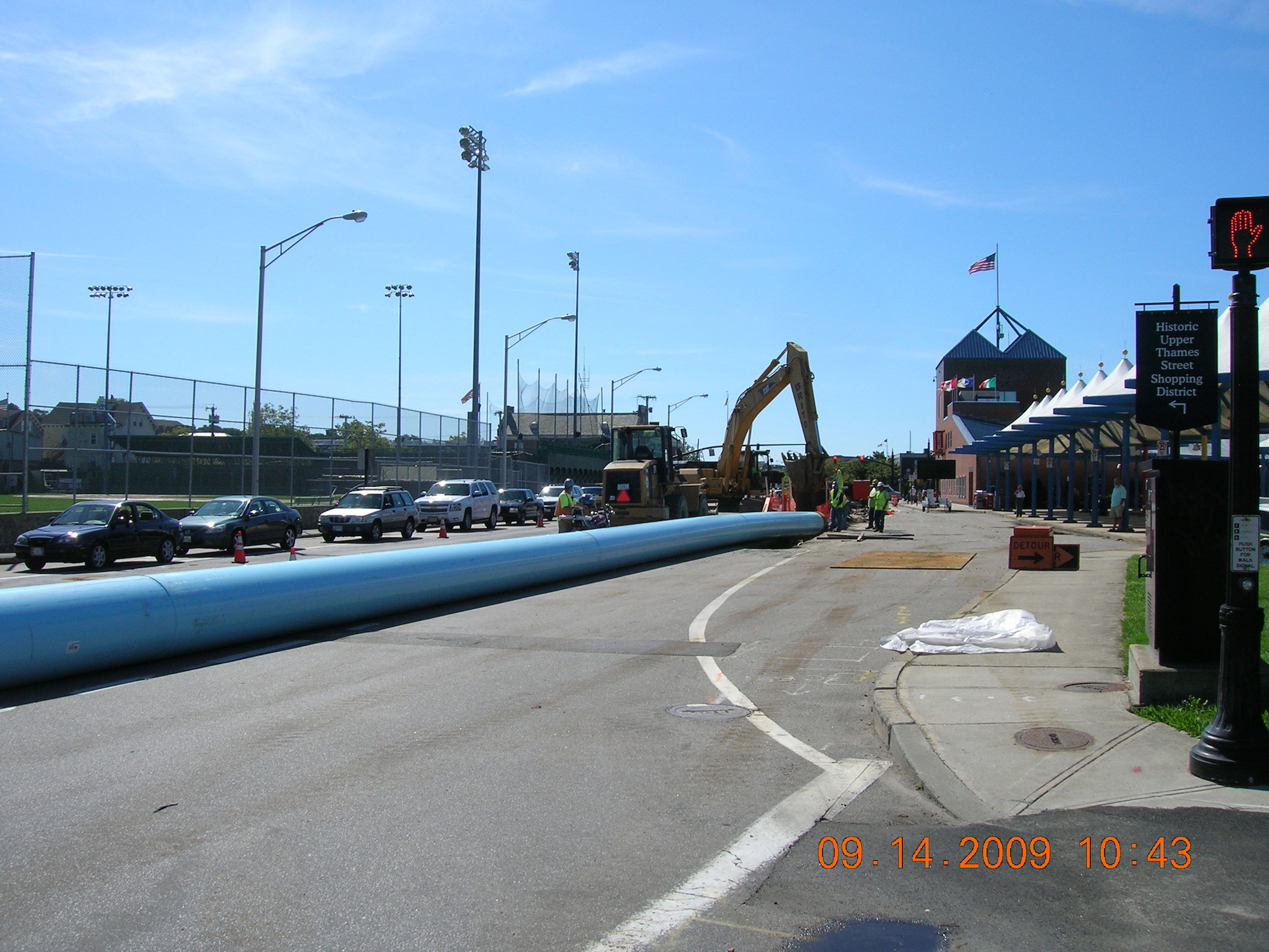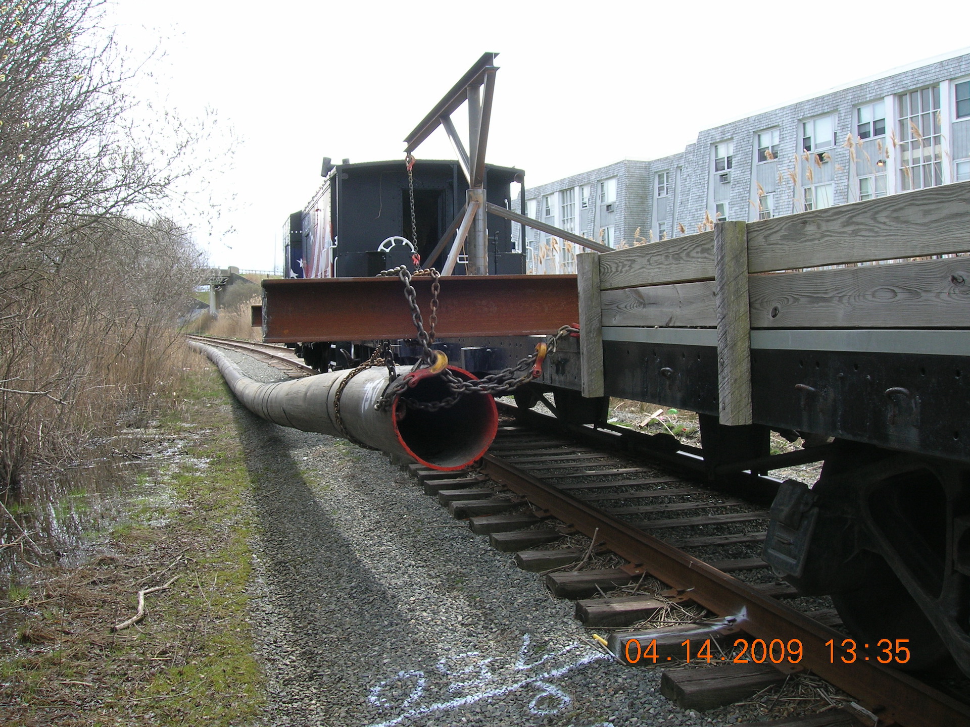 Complete bypass of 36” sewer force main with 37,000’ of 18” fused HDPE pipe, including tie-ins at 4 heavy-flow pump stations avoiding millions of dollars in fines and catastrophic pollution of Newport Harbor. C. Brito Construction Co., Inc. established a fusing & staging area on a nearby railway where lengths were fused and and then pulled by train alongside the tracks by a custom built hoisting arm mounted on a railcar.