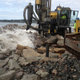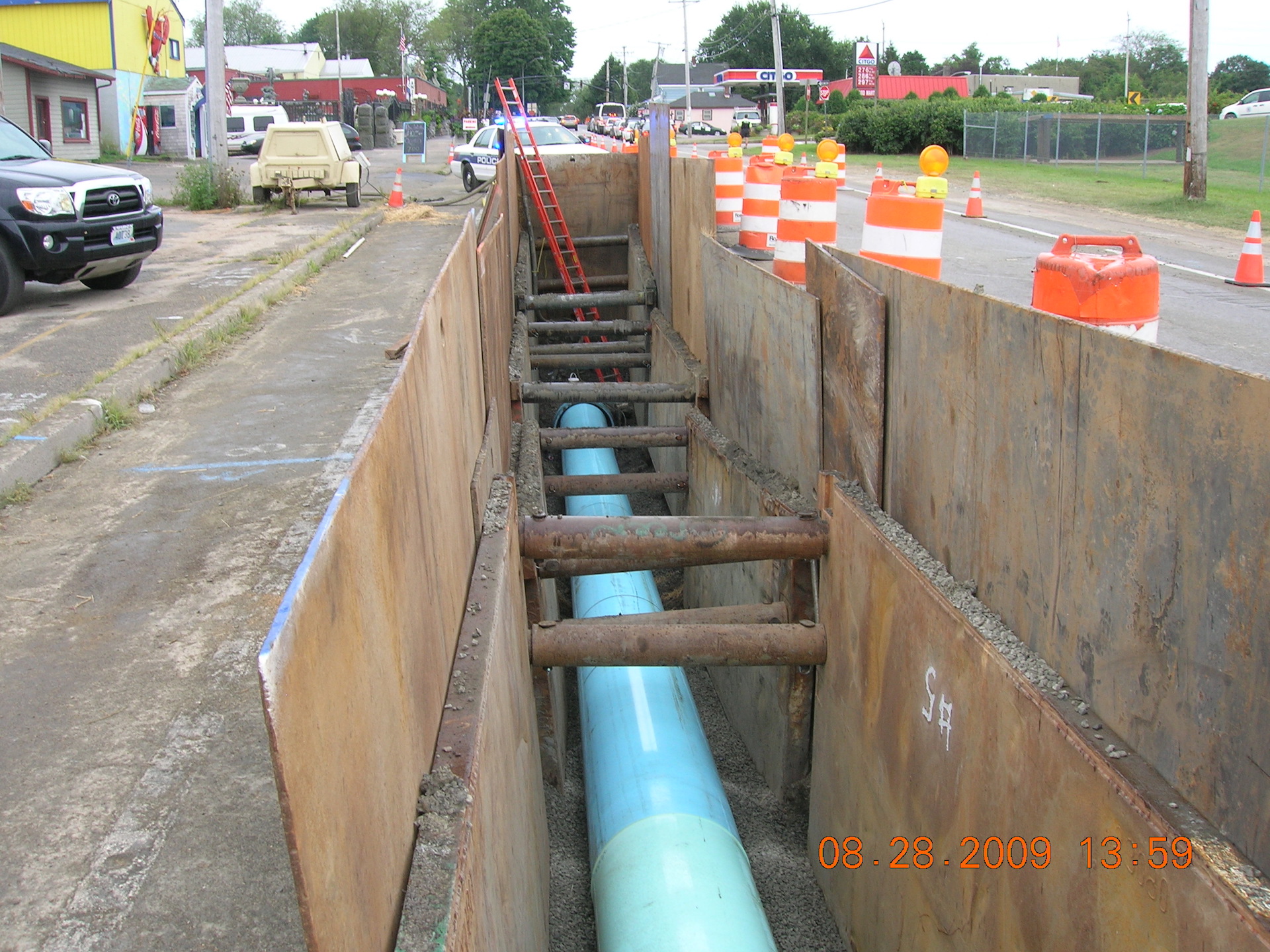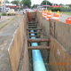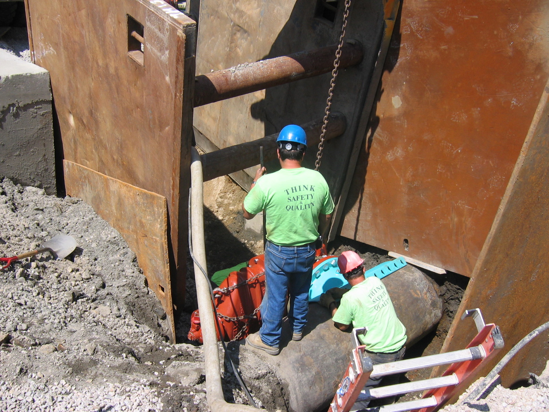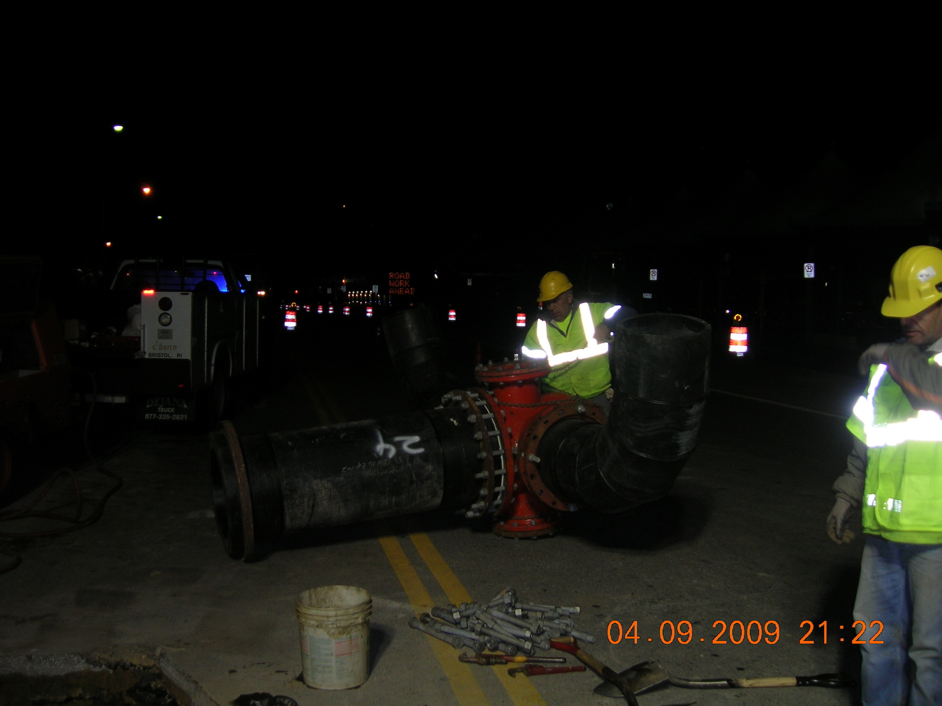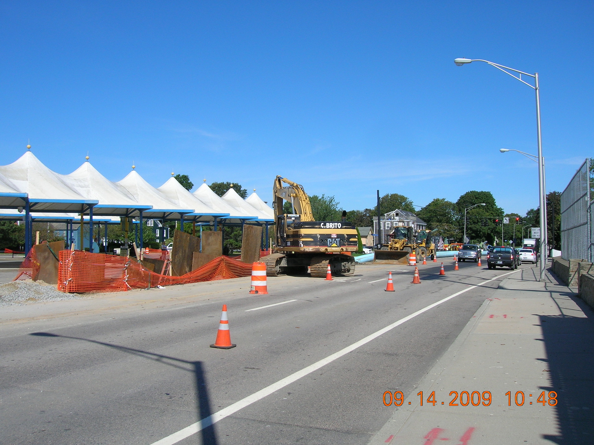 Complete bypass of 36” sewer force main with 37,000’ of 18” fused HDPE pipe, including tie-ins at 4 heavy-flow pump stations avoiding millions of dollars in fines and catastrophic pollution of Newport Harbor. C. Brito Construction Co., Inc. established a fusing & staging area on a nearby railway where lengths were fused and and then pulled by train alongside the tracks by a custom built hoisting arm mounted on a railcar.