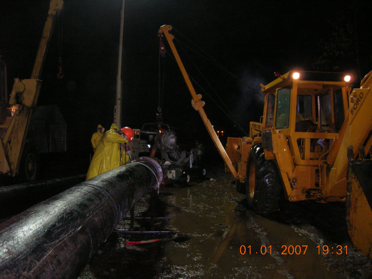 Bypass of 7920’ of 24” PCCP sewer force main with 18” fused HDPE pipe and installation of a 24” DI with epoxy-coated interior replacement sewer force main.