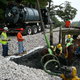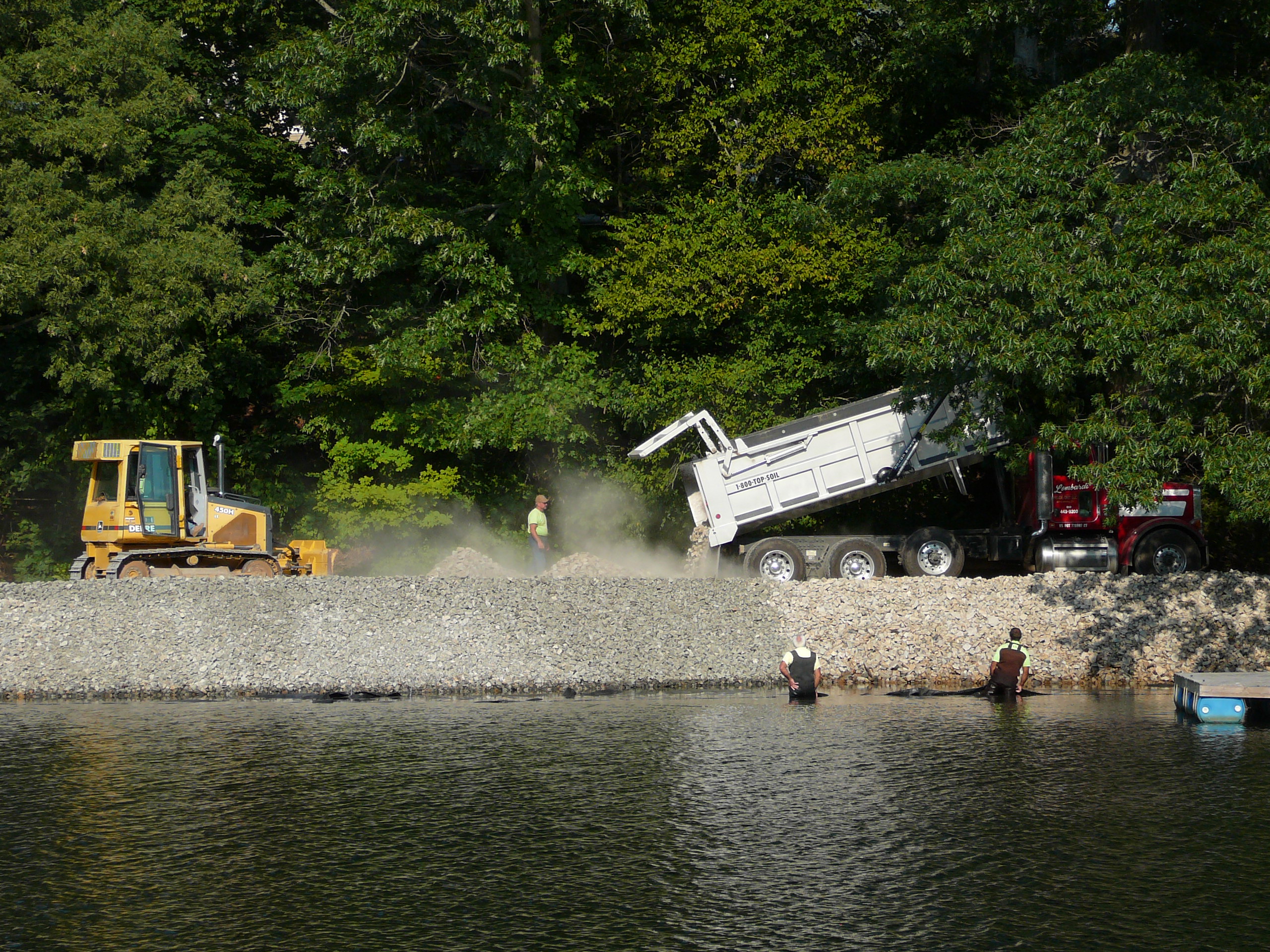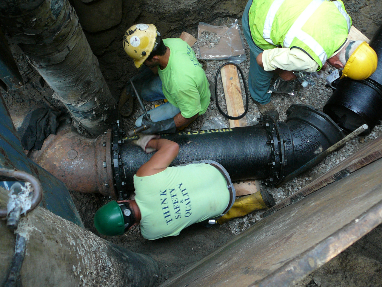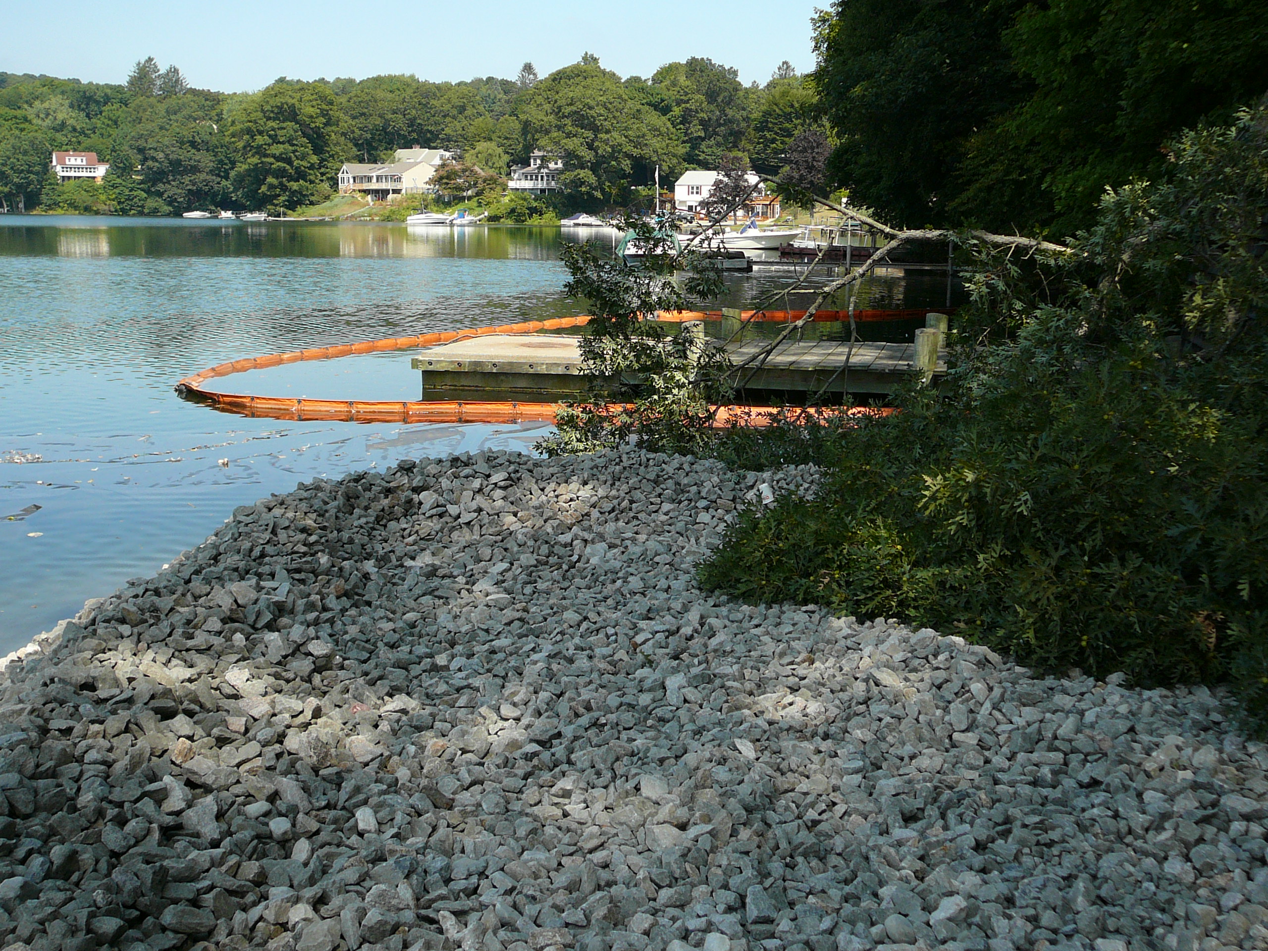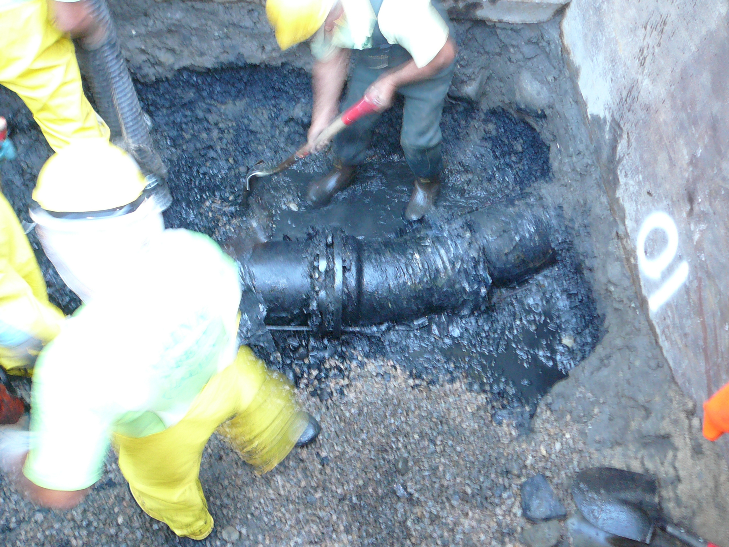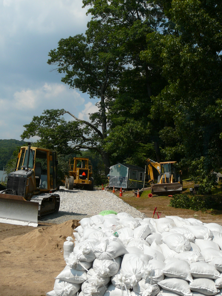 Repair of a leaking 14” cast iron sewer force main located 45’ offshore under the Smith Cove tidal basin by construction of a temporary access road composed of stone and crane mats, installation of a temporary cofferdam utilizing a rough terrain crane, and dewatering of the river utilizing 2-stage well points to access the break.